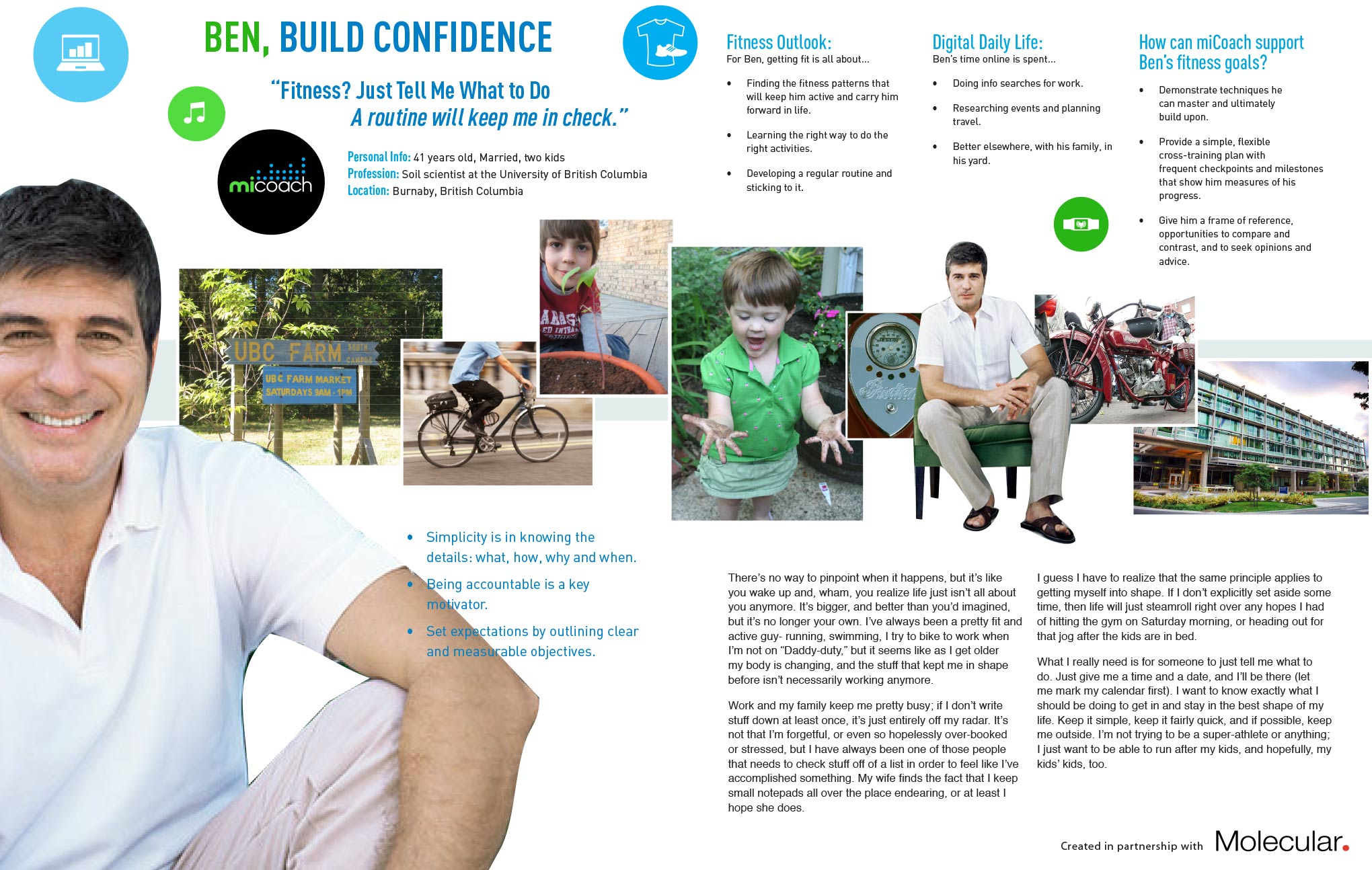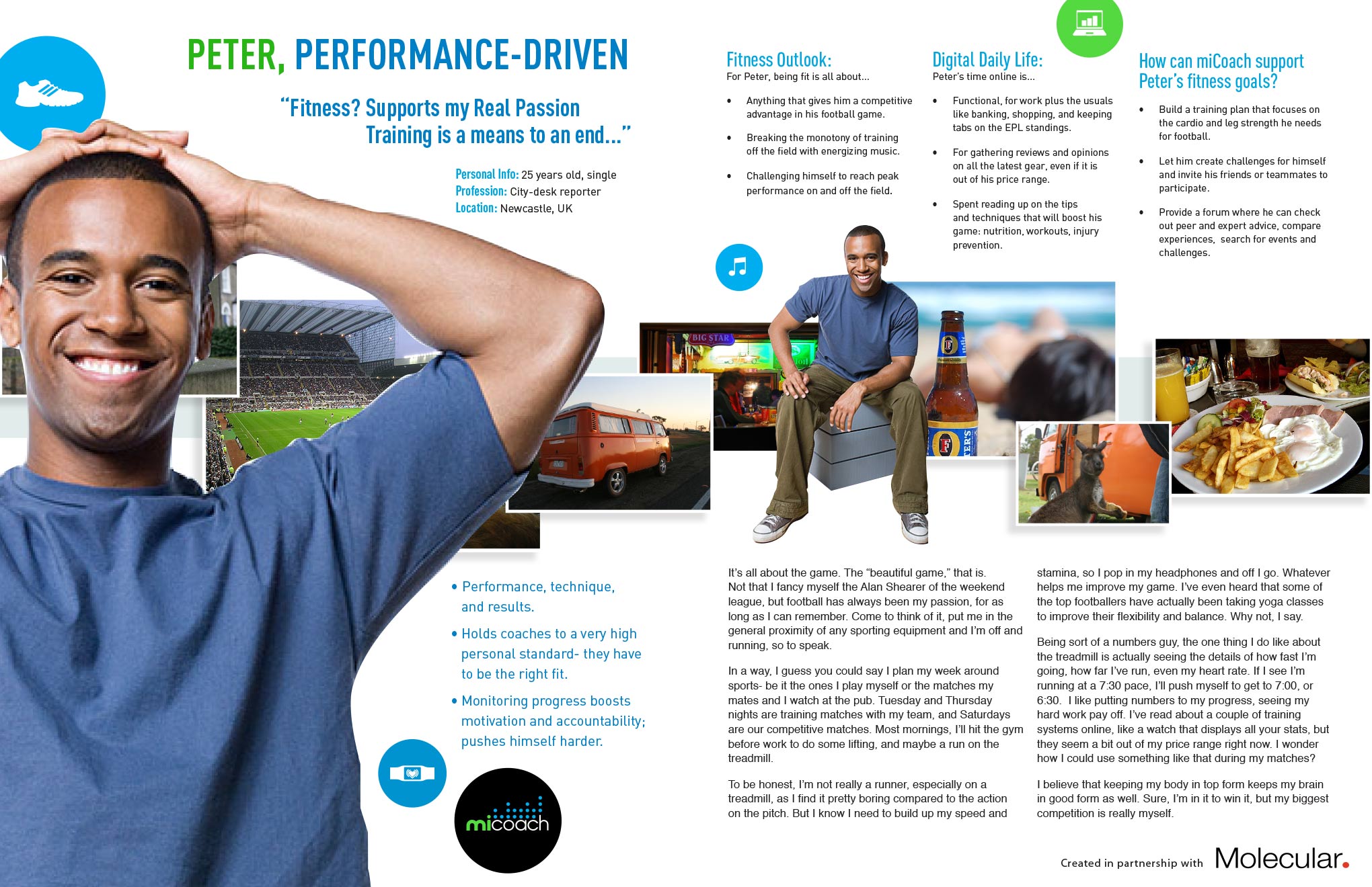 I love it when a project manifests itelf into something you can experience and connect with in the real world and not just the digital space. I was given a pre-production prototype to play with, and experienced the product first hand before launch. Although it had some bugs (not Mac compatible at the time) the miCoach system was way ahead of its time and competitors.