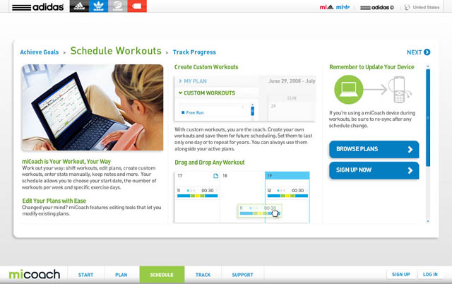The redesign for miCoach. miCoach is a real-time training system designed to motivate, inspire and enable athletes at all levels to reach their training goals, whatever they may be. The redesign focuses on adding more functionality to the overall system while keeping the user experience as easy and intuitive as possible.
