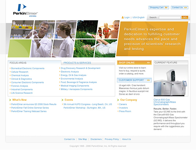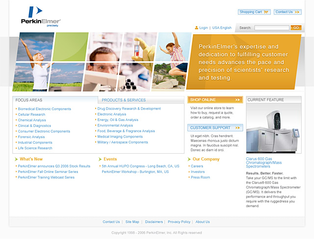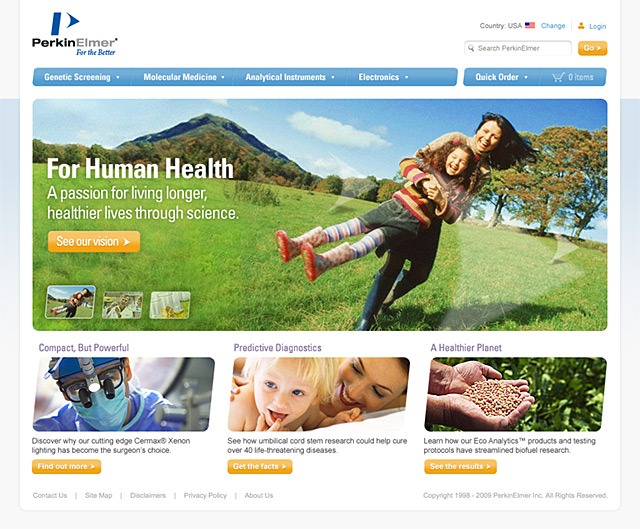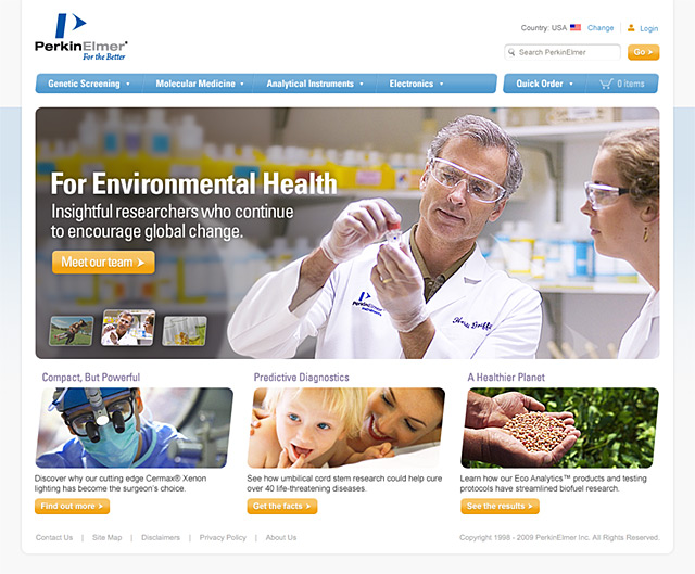 The PKI redesign was focused on humanizing the PerkinElmer brand, promoting the idea of building relationships and trust. Soft edges, corners and gradients to were used to achieve a balance between “scientific” and “human”. Site entry points were tailored to user types and support a seamless cross-over between all existing PerkinElmer sites.