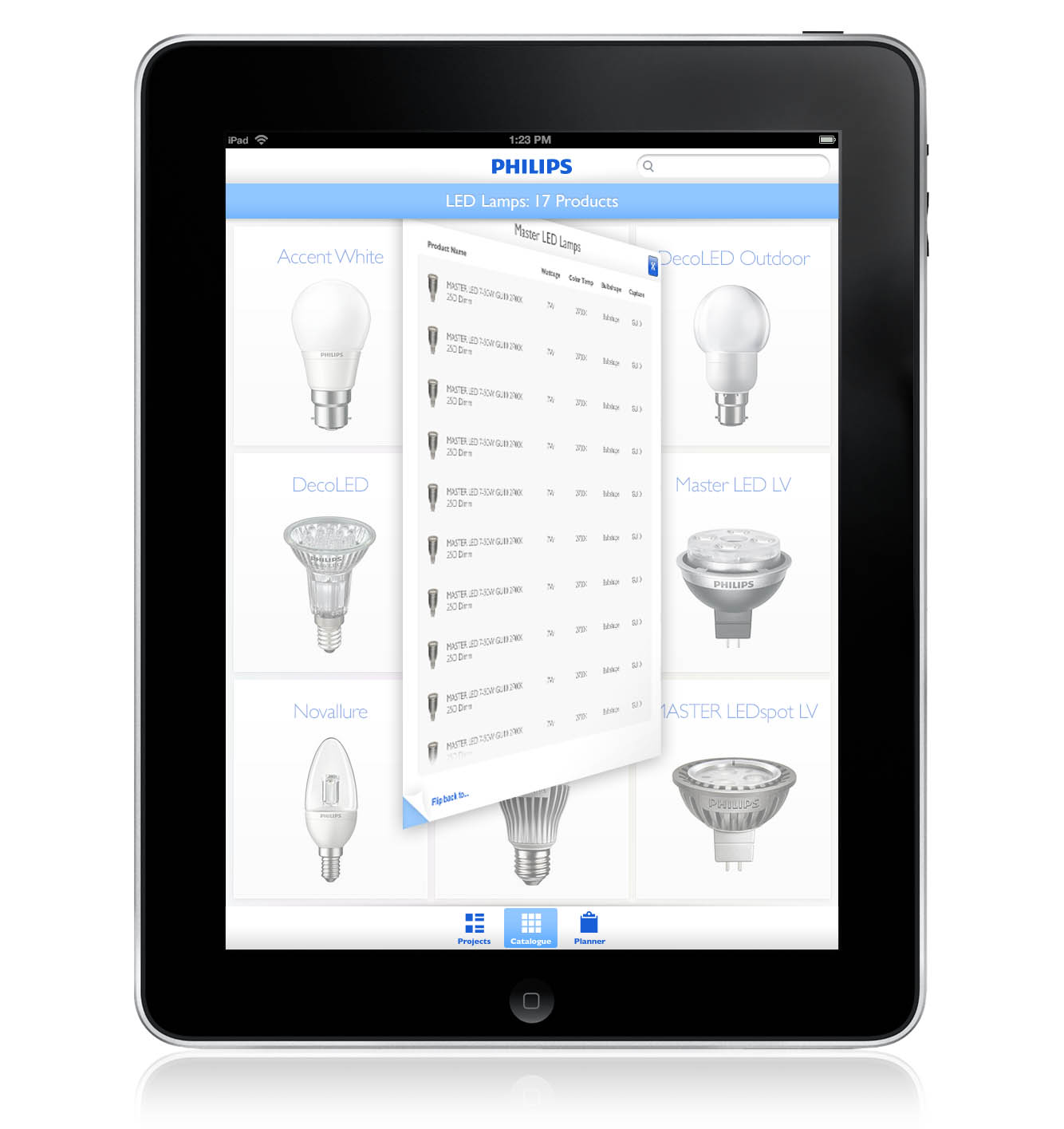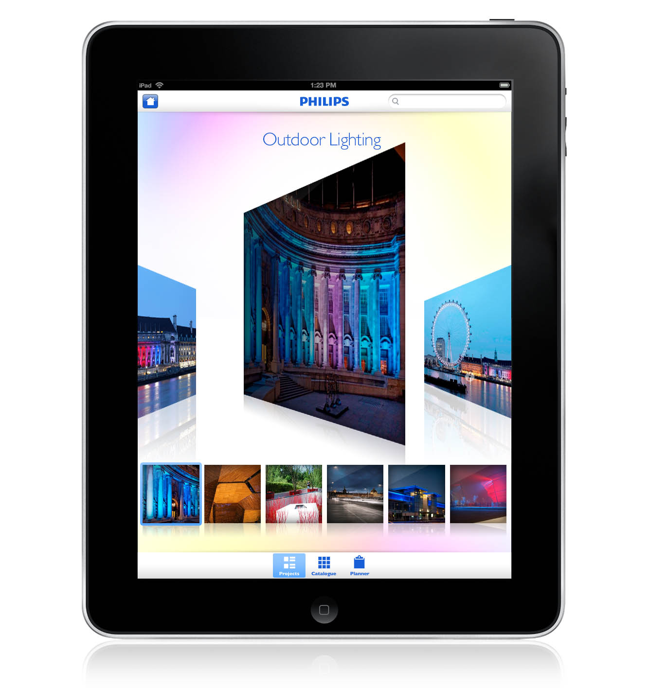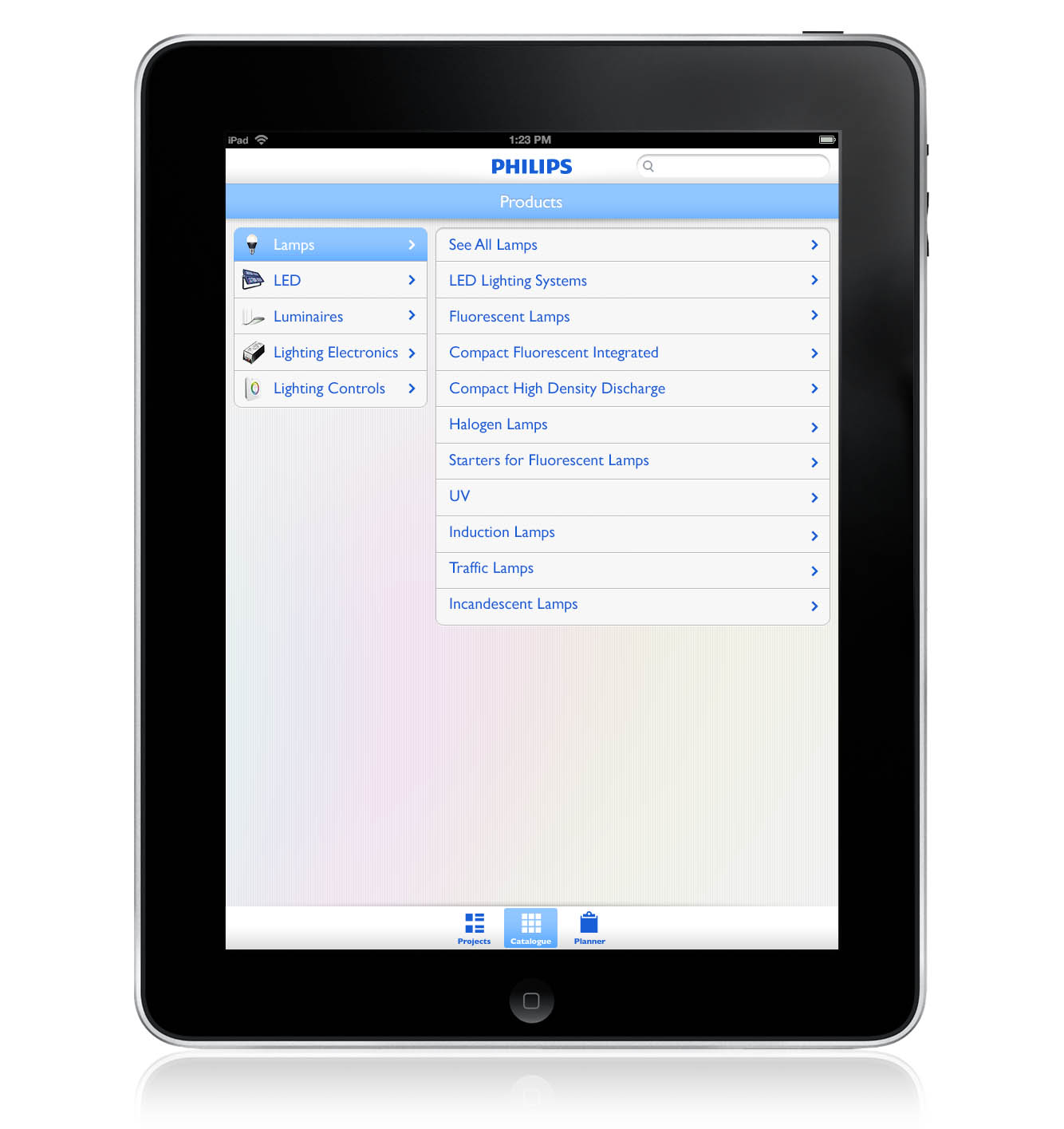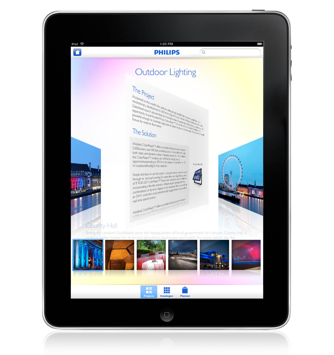 The app was aimed to provide an in depth interactive look at the lighting products and their applications.