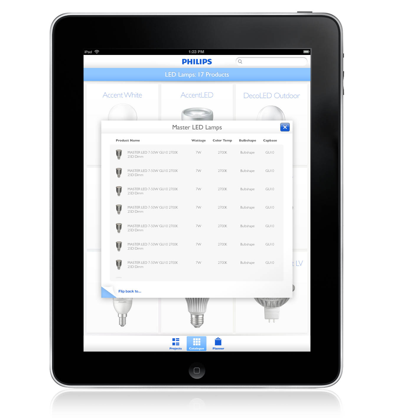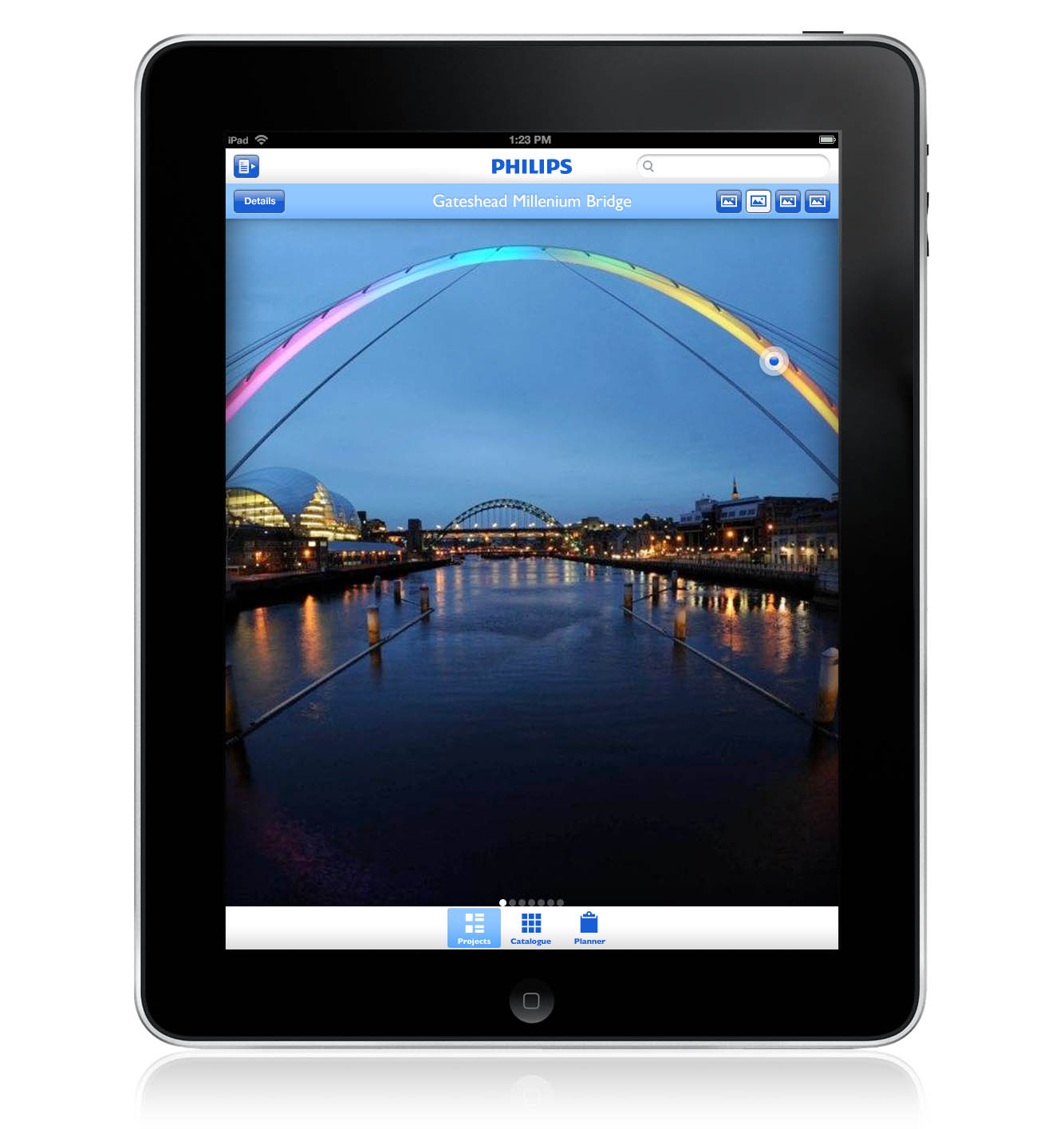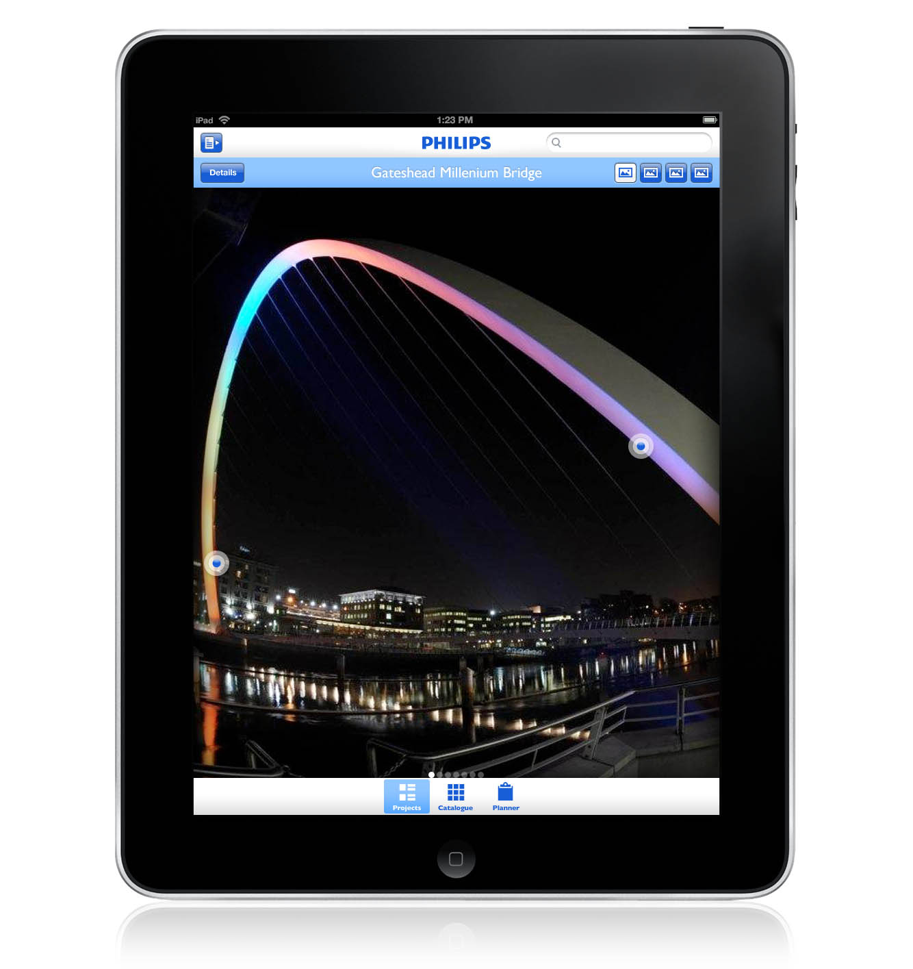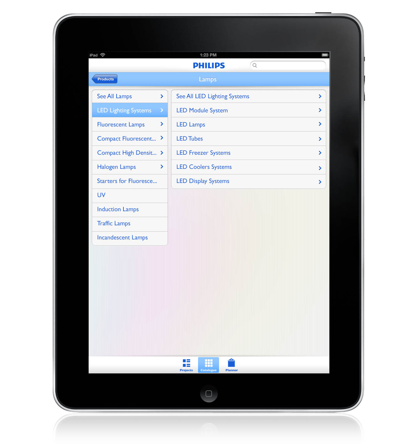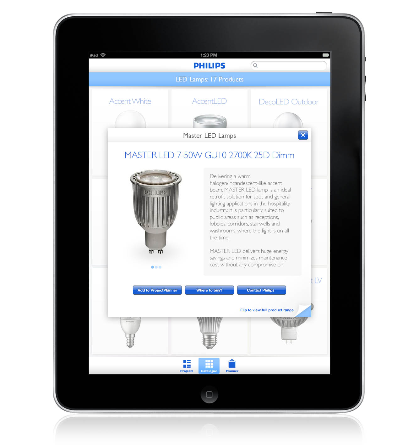 The app was aimed to provide an in depth interactive look at the lighting products and their applications.