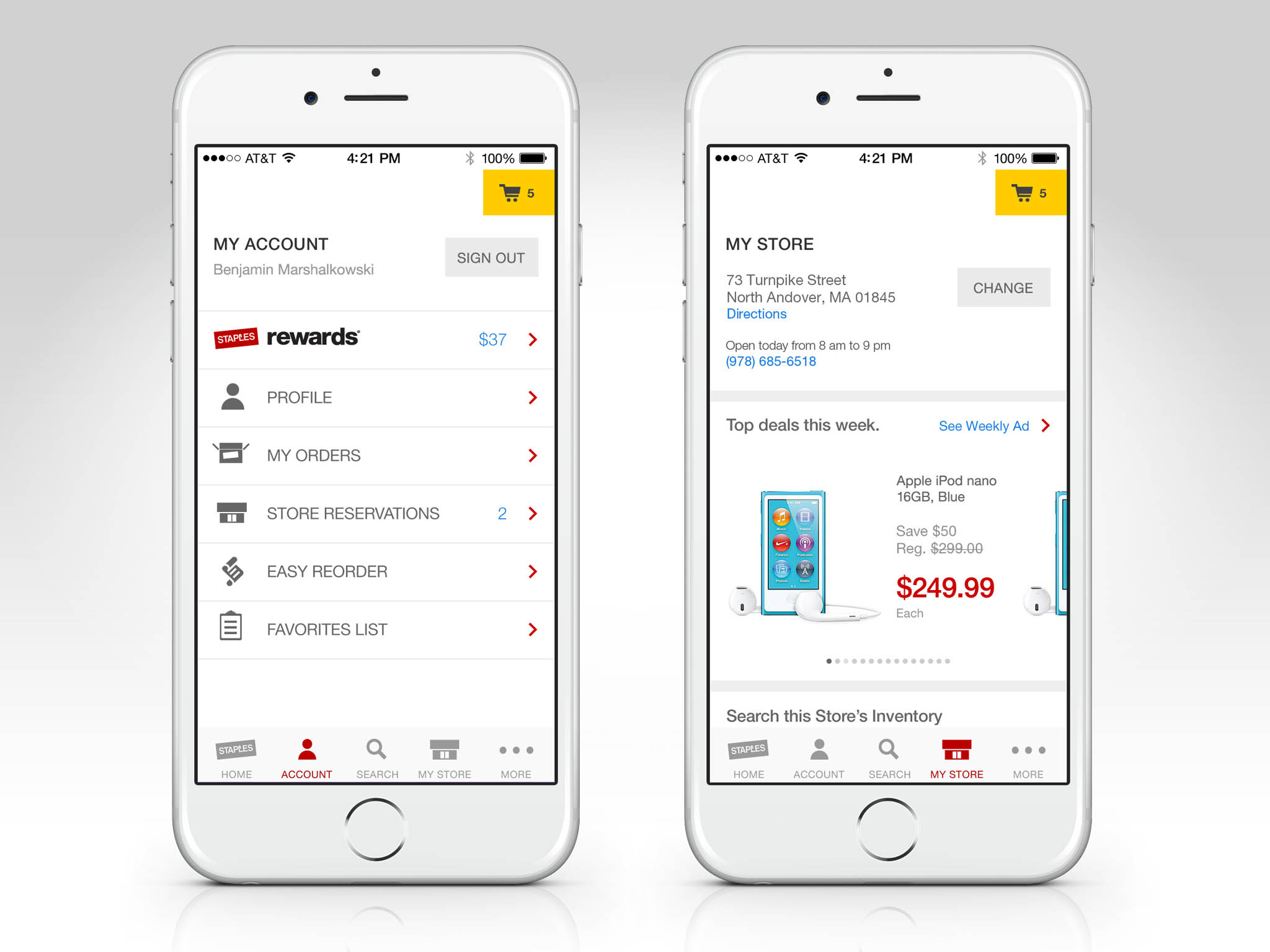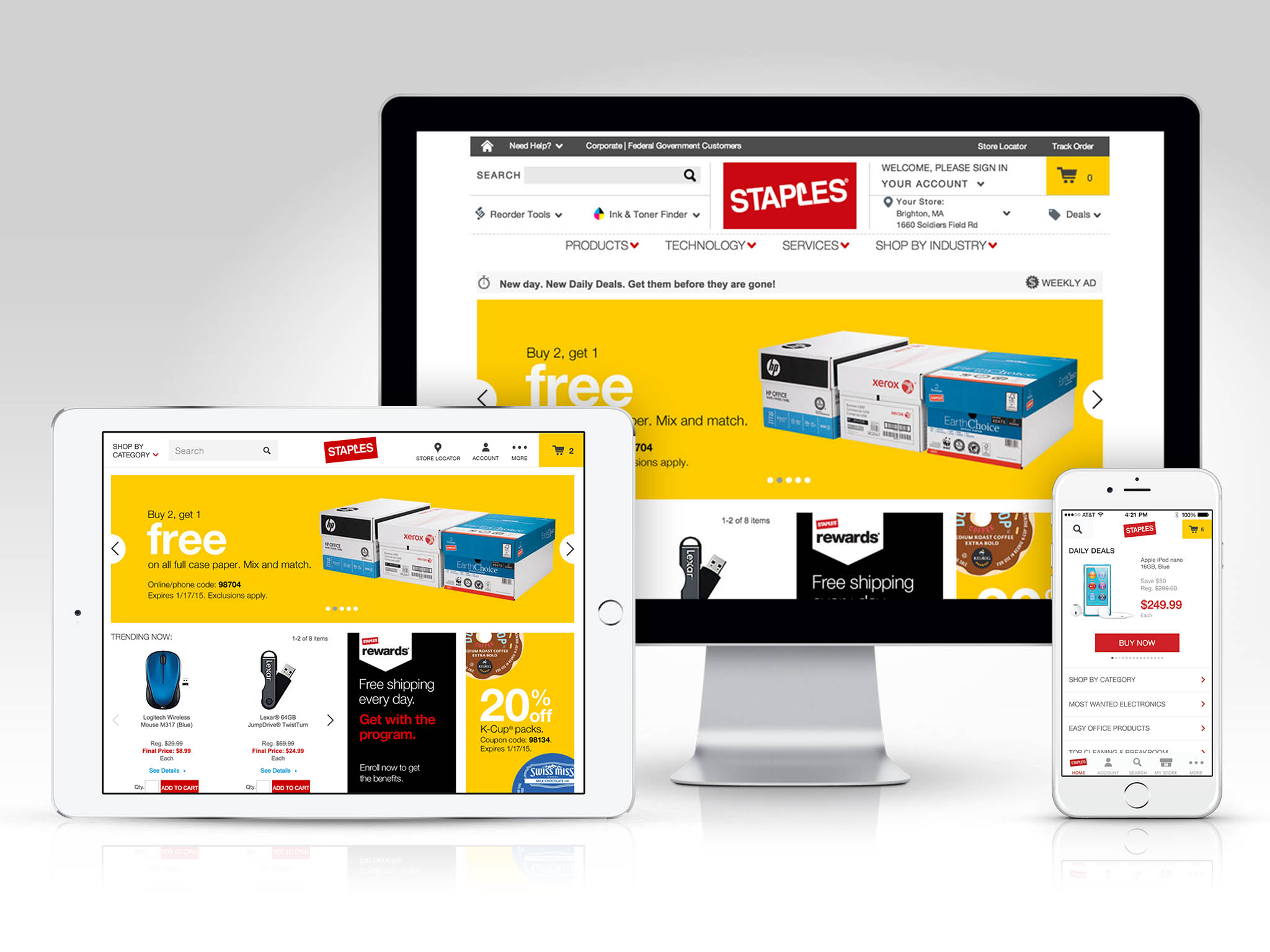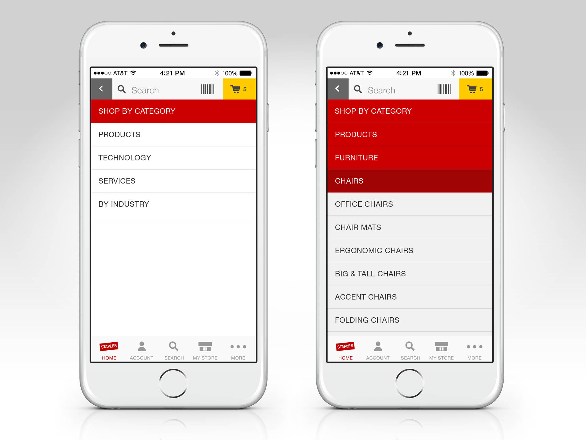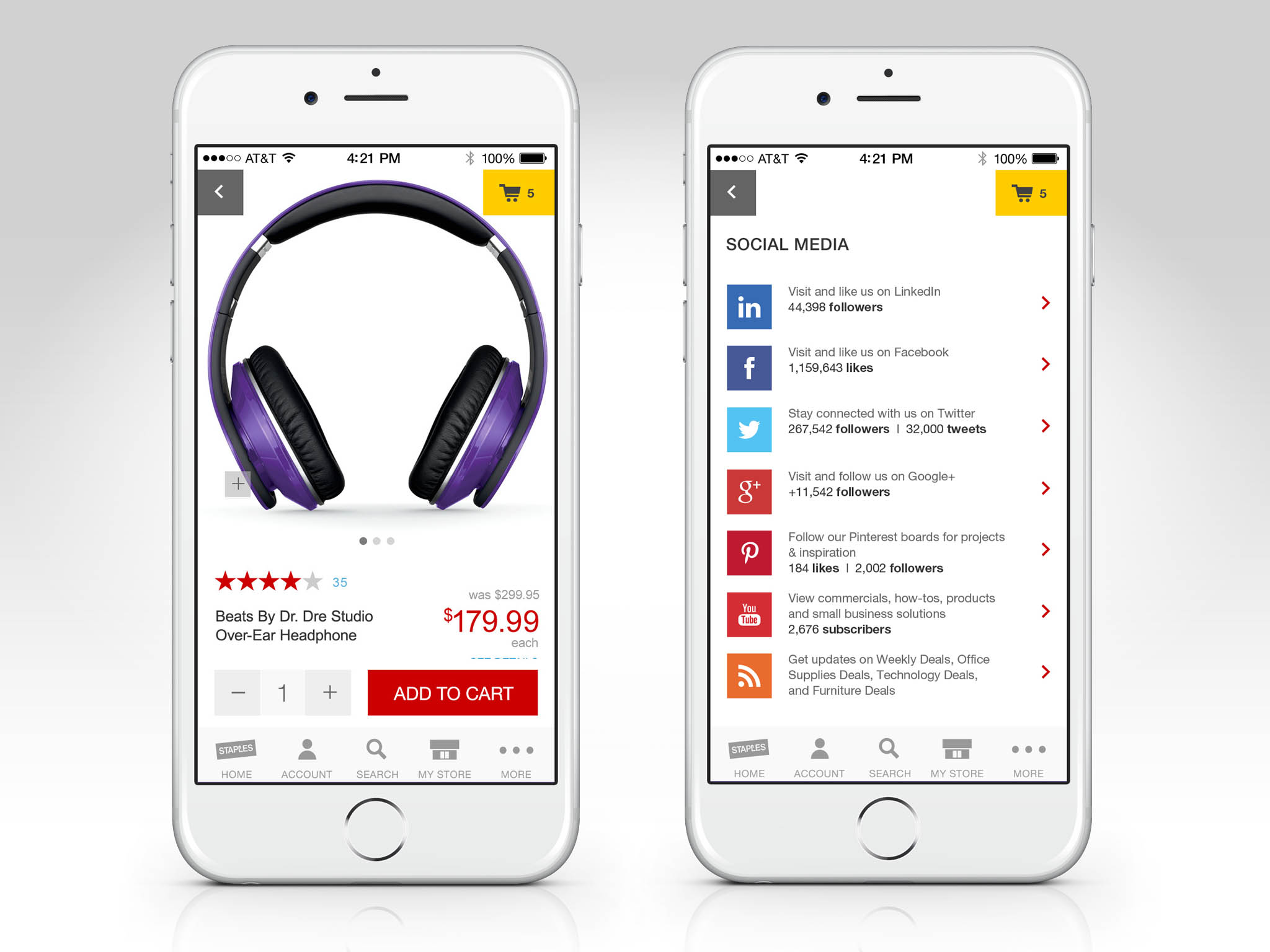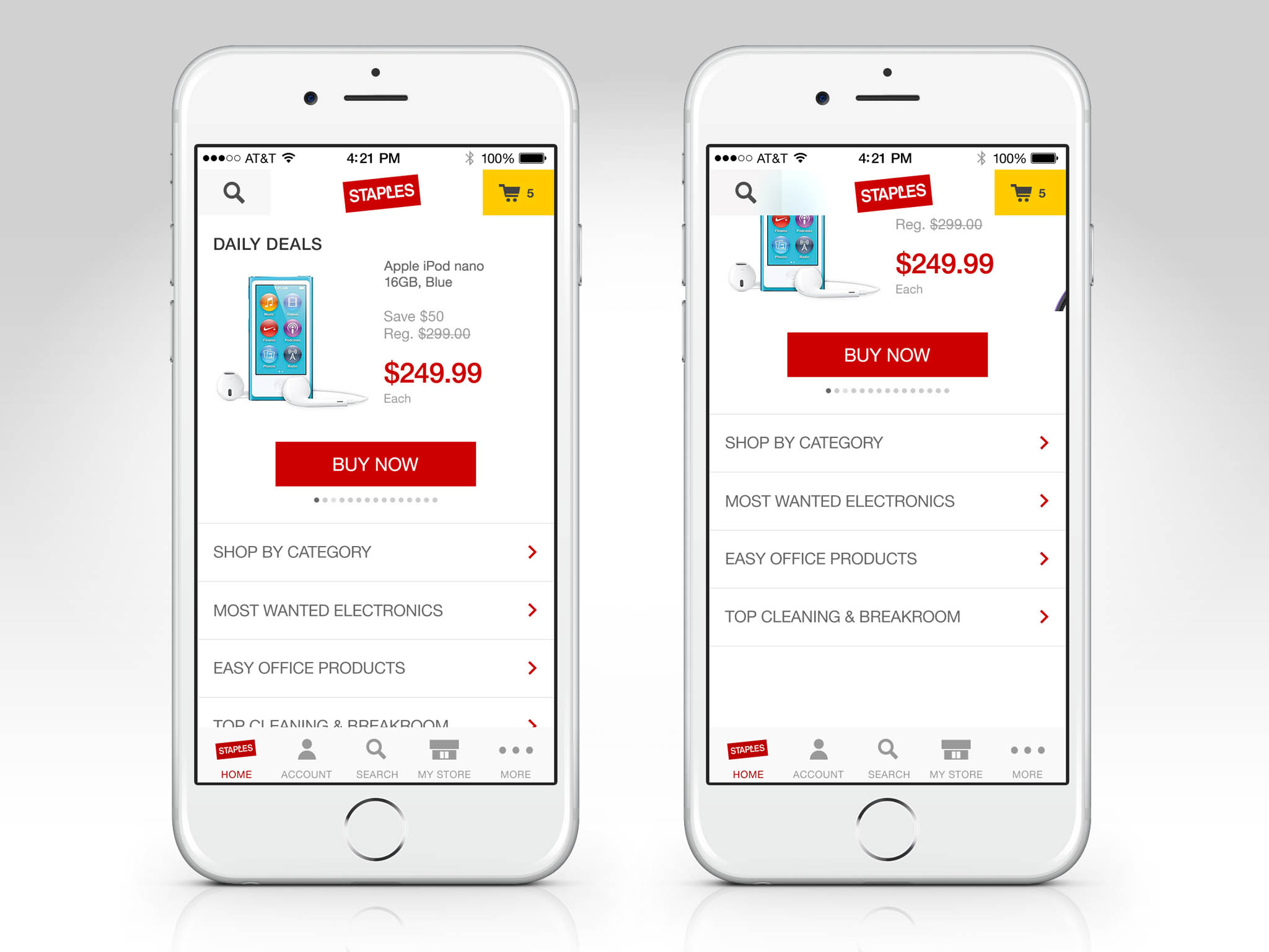 This was the first wave of redesigns to help establish a consistent experience for the Staples mobile audience, regardless of the platform or device they may choose to use. Initially, a global digital style guide was created that every property had to adhere to. After addressing the inconsistencies we focused on the visual DNA of the brand and defined a tone of voice. Finally, considering each platform and their unique navigational paradigms as well as the purpose of these devices (problem solving vs. exploration, etc.) we set out to deliver products that were both optimized for performance and unmistakably on brand.