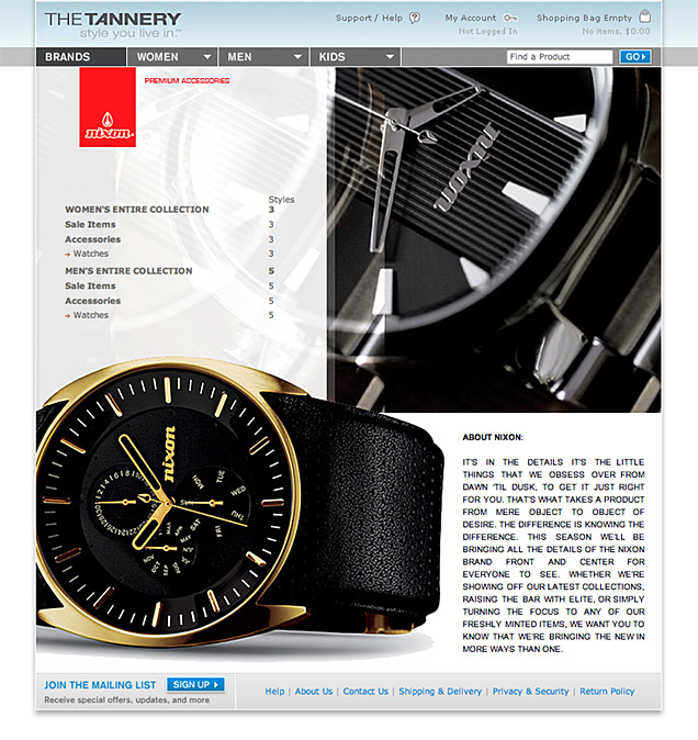 The main objective of the redesign was to create a user friendly and exciting online shopping experience that would allow The Tannery to compete against the other big ecommerce players in the industry. This project consisted of a new brand identity, much improved cross selling opportunities and a completely custom content management system.
