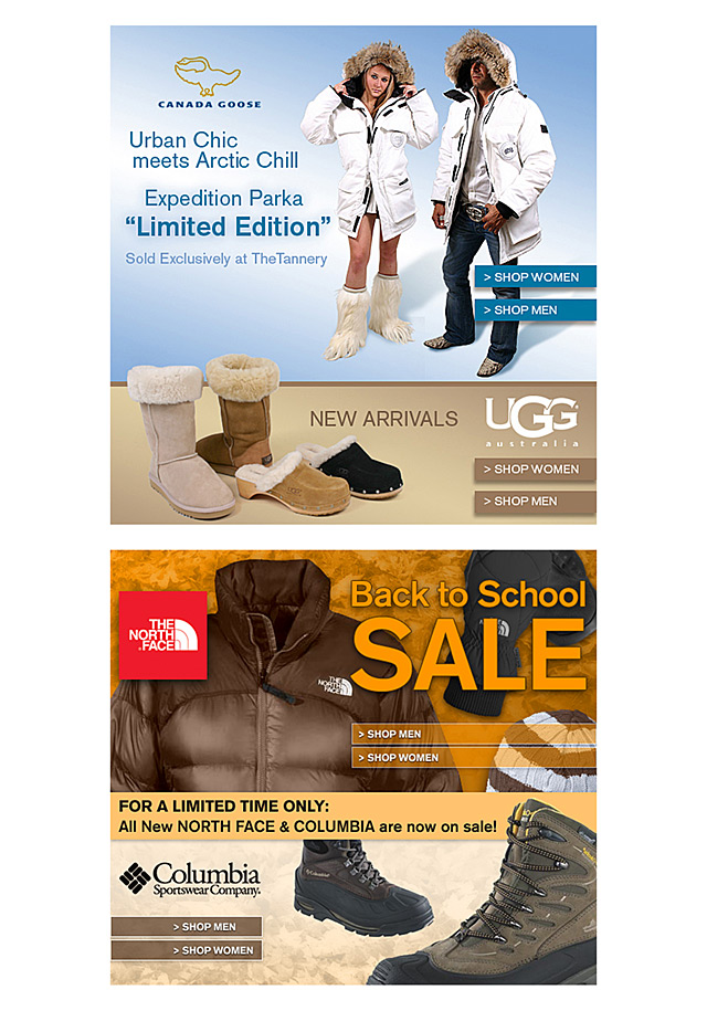 During my time at The Tannery, we produced numerous micro-sites, interactive banners, photo-shoots, viral email marketing campaigns, and other creative material. Here is a small sampling of the work.